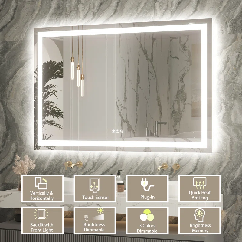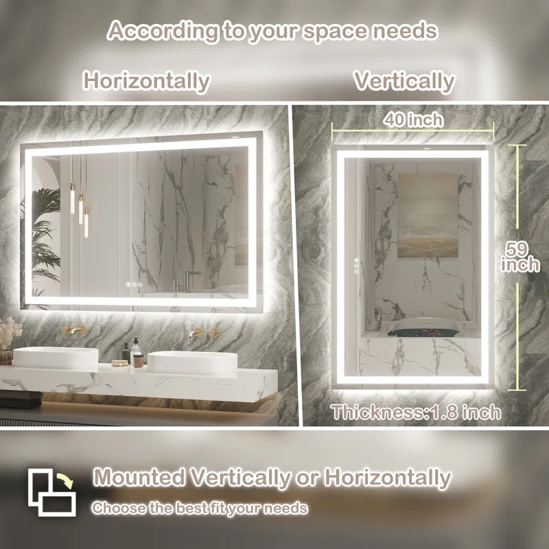 - Anti-fog and waterproof – our led bathroom mirror has anti-fog function you can press the button and wait for a few minutes to get a clear reflection image no worry about wiping the mirror down after a shower defogger will stop automatically after 60 minutes of continuous operation to prevent forgetting to turn it off the anti-fog switches can be switched on and off manually for energy saving the lighted bathroom mirror is already clean ip44 level waterproof rating ensures that the mirrors work safely and durable even in wet bathroom environments, provides a great and safe lighting
