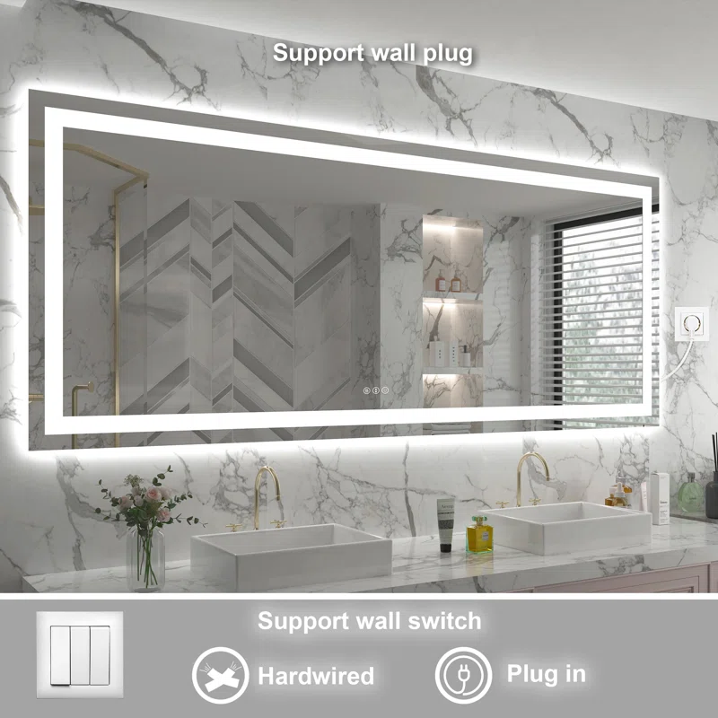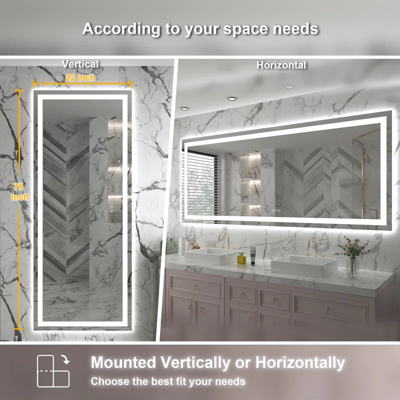 - Anti-fog and waterproof – our led bathroom mirror has anti-fog function you can press the button and wait for a few minutes to get a clear reflection image no worry about wiping the mirror down after a shower defogger will stop automatically after 60 minutes of continuous operation to prevent forgetting to turn it off the anti-fog switches can be switched on and off manually for energy saving the lighted bathroom mirror is already clean ip44 level waterproof rating ensures that the mirrors work safely and durable even in wet bathroom environments, provides a great and safe lighting